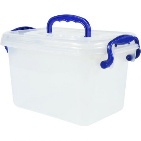 Caja organizadora con manijas a los lados. Cierre seguro. Manija para cargar. Con tapa.