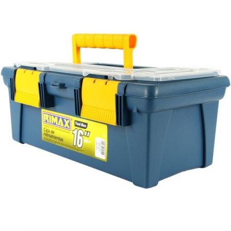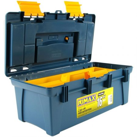 Material: plástico. Caja organizadora de herramientas u otros elementos y accesorios. Manija de agarre en la parte de encima. Pestaña de cierre a presión en la mitad de la caja. Incluye bandeja organizadora. 5 compartimientos pequeños. Dos compartimientos alargados. La caja es de forma rectangular. Material resistente y diseñado para durar.