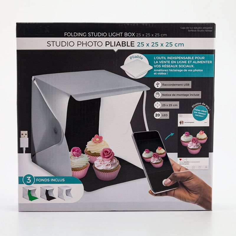 Caja de luz pegable por 24cm2 podras sacar fotos como un profesional a productos o elementos generando imágenes con excelente luz.