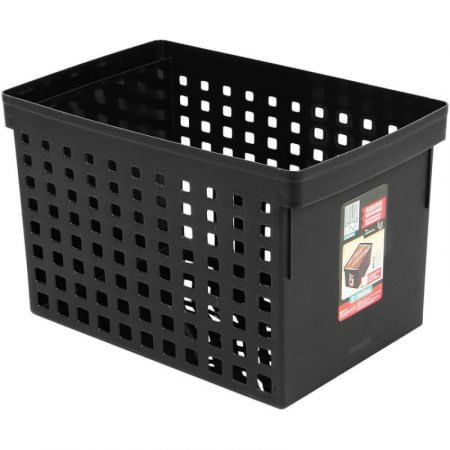 Material: plástico. Diseño: rectangular. Capacidad para 27.9 litros. Ancho agujerado a cuadros. Etiqueta organizadora.