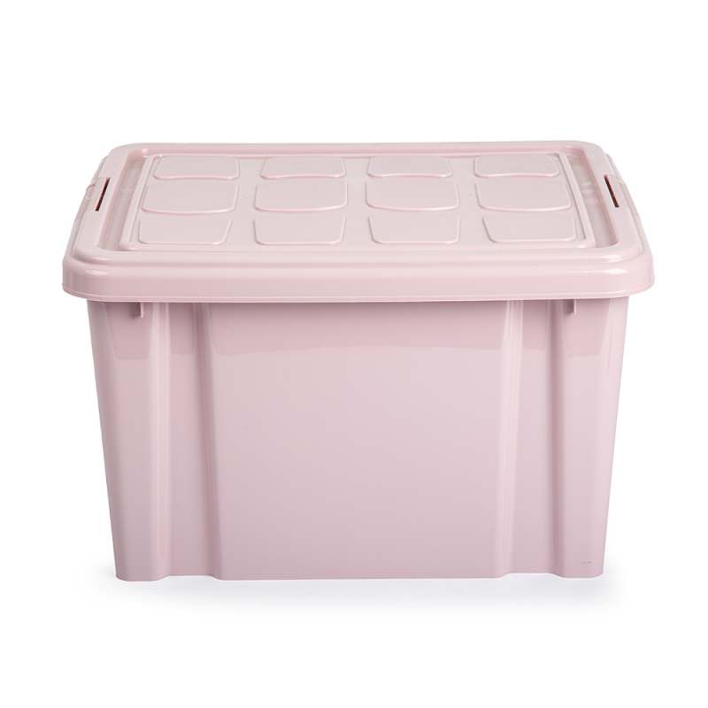 Caja resistente en color rosado, perfecta para organización general.