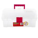Material: plástico. Caja organizadora. Pestaña de cierre. Manija de agarre. Compartimientos para almacenar accesorios, herramientas, adornos u objetos varios. Incluye espejo y gavetas. 18 x 35 x 19cm
