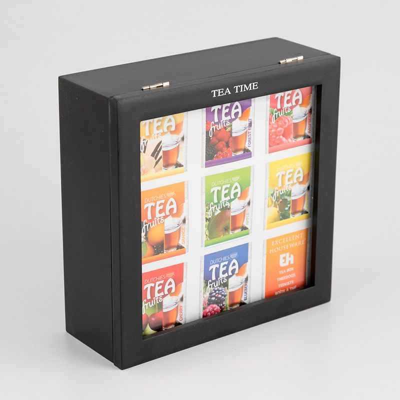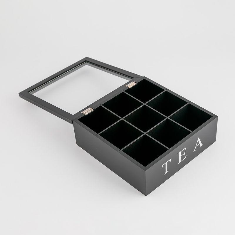 Caja Te Excellent Houseware 200 ml MDF C37800130 es un organizador para bolsas de té fabricado principalmente en MDF (fibra de densidad media) con acabado en color negro, diseñada para mantener tus diferentes sabores de té bien ordenados y accesibles. Tiene varios compartimentos internos (usualmente entre 8 – 9) que permiten clasificar varias infusiones o bolsitas por tipo, lo que ayuda a mantener la cocina organizada y facilitar la selección al momento de preparar té. La caja combina practicidad y estilo, ofreciendo un acabado elegante que puede complementar la decoración de tu cocina o espacio de bebidas, además de ayudar a conservar los sobres de té en un solo lugar.