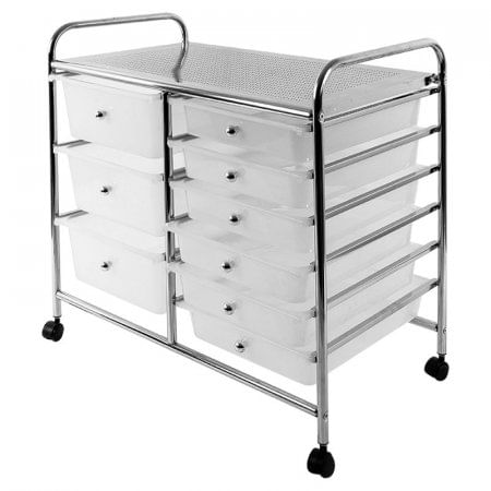 Este práctico carro organizador con 9 cajones te ayudará a mantener tus cosas más ordenadas y en un solo lugar. Con manijas de botón que facilitan su apertura y ofrecen mayor espacio, es perfecto para almacenar una variedad de objetos. Fabricado en metal cromado y polipropileno, este carro es resistente y duradero, lo que garantiza su funcionalidad en cualquier lugar y espacio de tu hogar. El orden es esencial, y con este organizador podrás optimizar el espacio de manera eficiente.