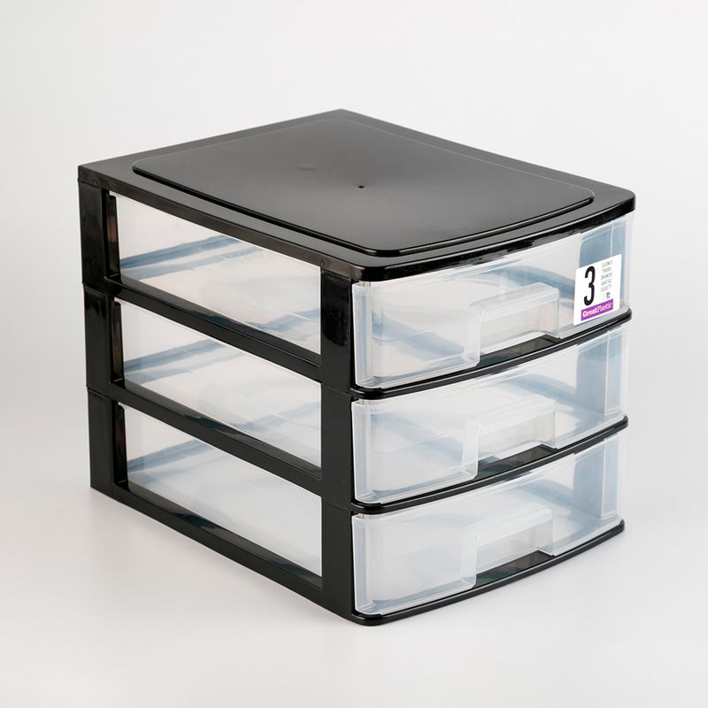 Cajonero Marca Great Plastic Stylo Medidas 35.5X26.5X26.5 Cm Color Negro Capacidad 3 Cajones