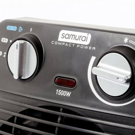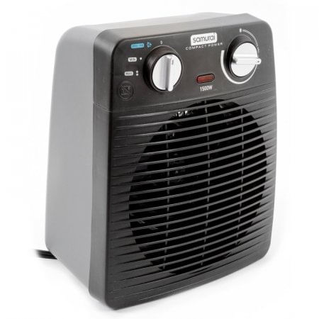 Calentador Samurai 201492-Negro Toda la practicidad de los mejores productos a tu alcance goza de este calentador en todos lados, gracias a que es fácil y rápido de utilizar disfruta de un calor directo al instante, ya que su tamaño lo hace asequible a cualquier espacio. ¡No te quemes! su impactante botón de selección permite que programes sencillamente la cantidad de calor que deseas, entre 750 W y 1500 W. ¡A un solo clic de la comodidad y la frescura! Además, por sus medidas de 25 x 11 x 21 y peso de 1 kg hace que sea el producto que cualquiera desearía tener. Voltaje entre 110 V 120 V 3 velocidades Control manual Negro 1500 Watts Energía eléctrica Aspas de plástico