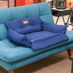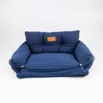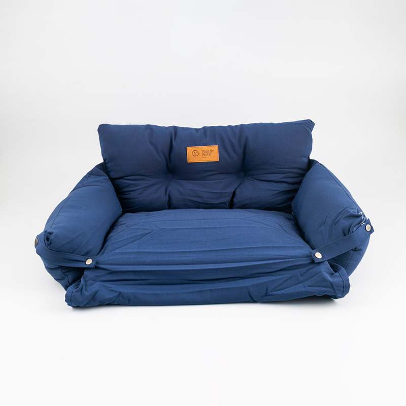 Espaciosa y cómoda, esta cama tipo sofá es ideal para perros grandes. Su acolchado firme y tela de algodón azul garantizan descanso y estilo en un solo lugar.