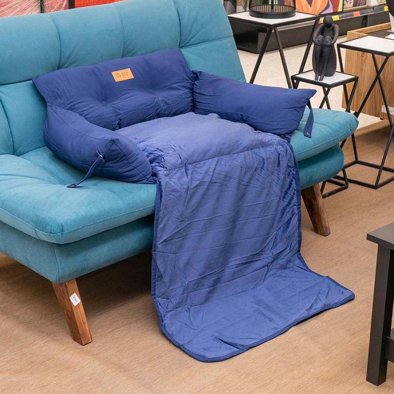 Cama De Perro Vida De Perro Tipo Sofa 75X60X25Cm Azul Algodon Vdp
