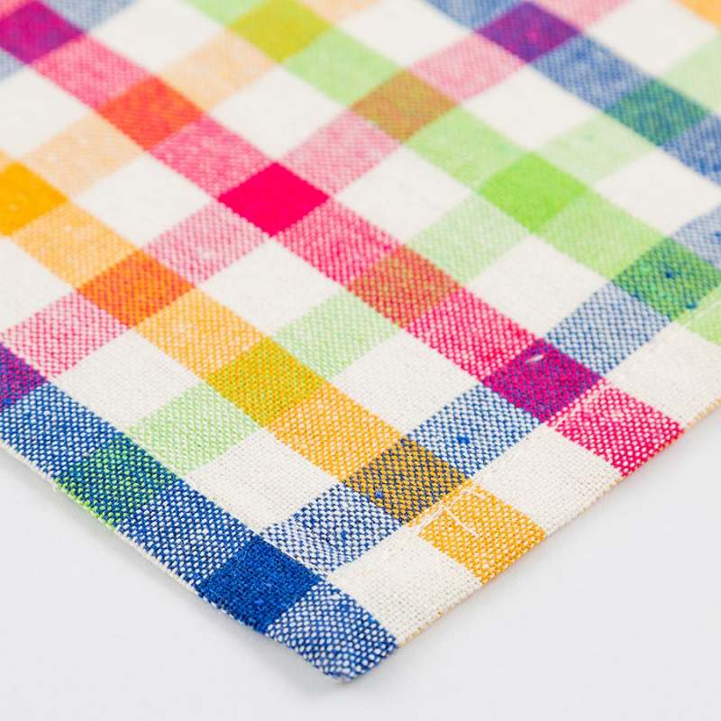 Camino de mesa con cuadros multicolor. Elaborado 45% algodón,45% poliéster y 10% viscosa. Dimensiones: 53x41cm. 340gr