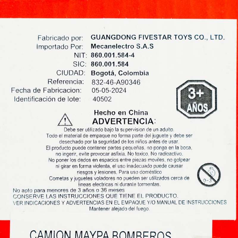 JugueteríaNiñoCarros Fricción Y TracciónCamion Maypa Bomberos 34X8Cm Rojo 2 Pz Plastico 832-46-A90346