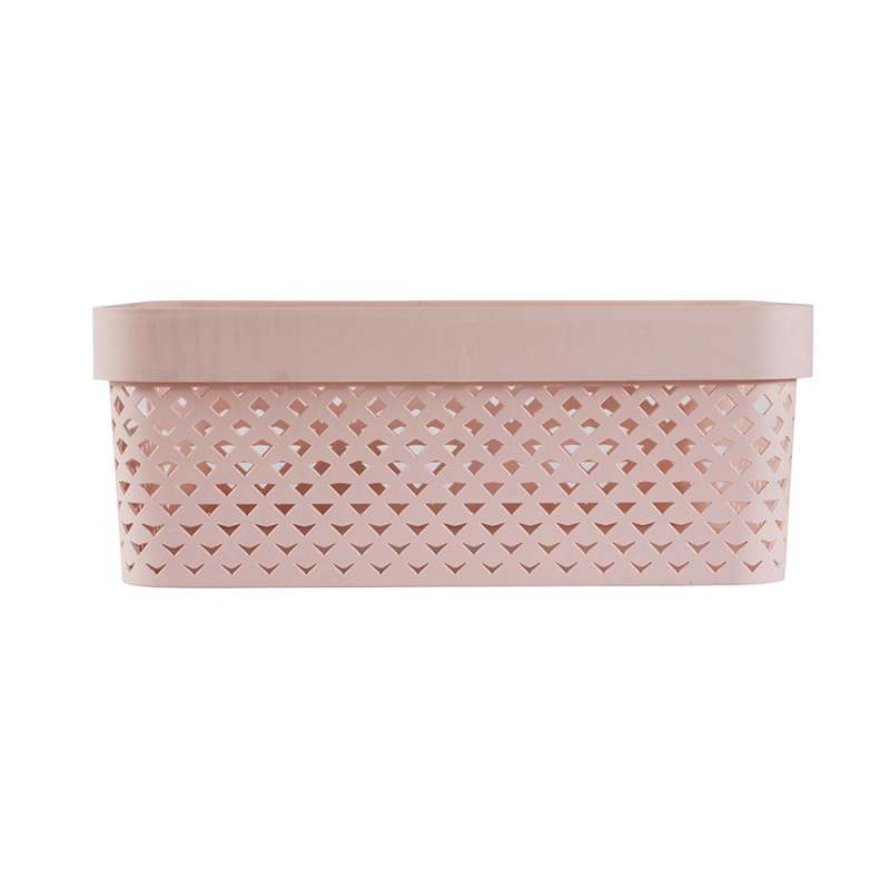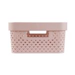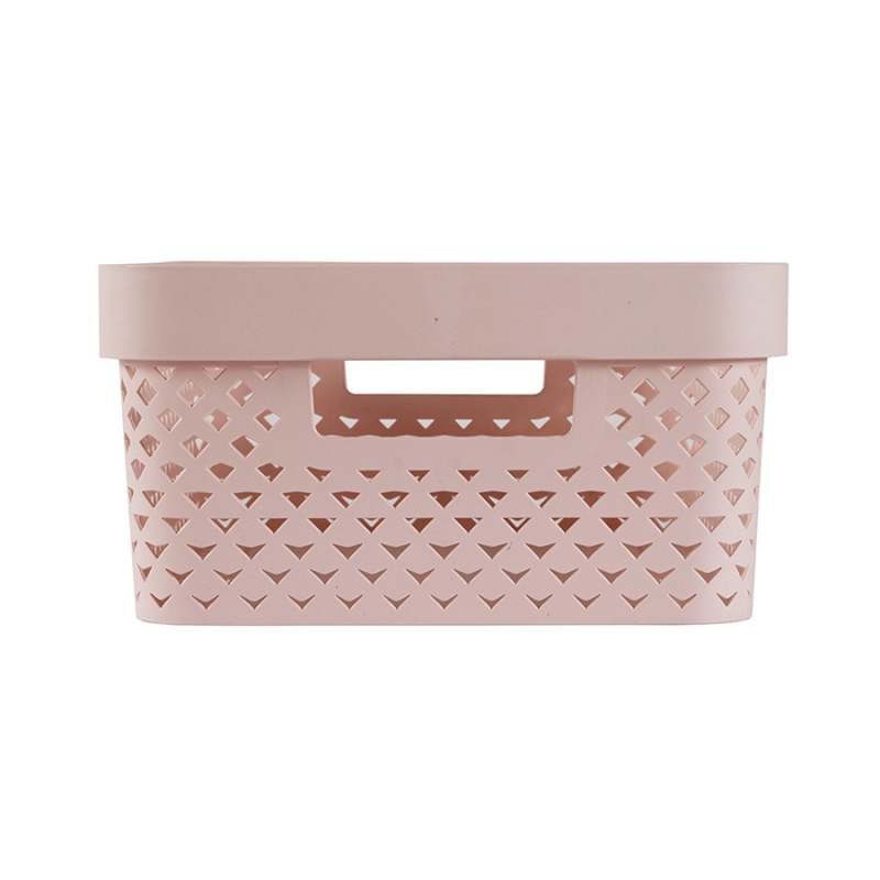 Canasta para organizar prendas y accesorios. Diseño geométrico refinado y simple con paleta de colores modernos. Fabricada 100 % con plástico reciclado, esta gama no sólo es respetuosa con el medio ambiente, sino también muy práctica. Todas las formas son encajables, modulares, fáciles de transportar gracias a las asas ergonómicas y muy cómodas de utilizar a diario. Capacidad:11 Litros Color Rosa