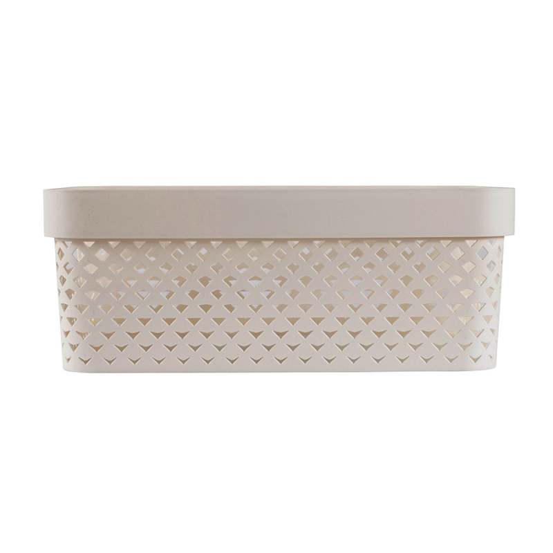 Canasta para organizar prendas y accesorios. Diseño geométrico refinado y simple con paleta de colores modernos. Fabricada 100 % con plástico reciclado, esta gama no sólo es respetuosa con el medio ambiente, sino también muy práctica. Todas las formas son encajables, modulares, fáciles de transportar gracias a las asas ergonómicas y muy cómodas de utilizar a diario. Capacidad:11 Litros Color Blanco