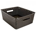 Canasta organizadora Curver ideal para cualquier objeto que necesites resguardar, ya sean juguetes, accesorios, utensilios, ropa o comida. Esta caja multiusos es de un plástico resistente y liviano, es de colro café con un diseño único, su capacidad es de 5 Litros y sus dimensiones son 35 x 13 x 29 cm, además cuenta con asas laterales por si es necesario trasladar a diferentes lugares.