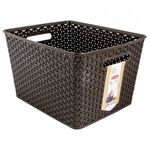 Canasta organizadora Curver ideal para cualquier objeto que necesites resguardar, ya sean juguetes, accesorios, utensilios, ropa o comida. Esta caja multiusos es de un plástico resistente y liviano, color Cafe, su capacidad es de 5 Litros y sus dimensiones son 35 x 22 x 29 cm, además cuenta con asas laterales por si es necesario trasladar a diferentes lugares.