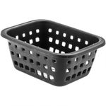 Material: Plástico. Canasta organizadora. Rectangular y pequeña. Agujeros a cuadros a los lados. Acabado mate. Capacidad para 1.45 litros.