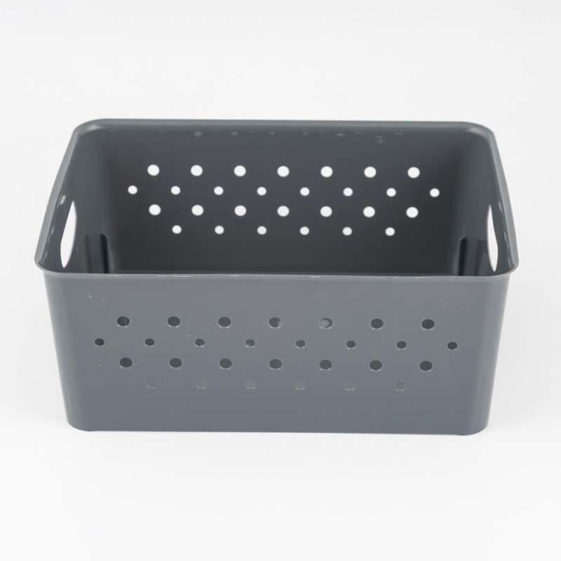 Canasta de plástico gris oscuro, tamaño grande de 30x21x21 cm, perfecta para organizar y almacenar.