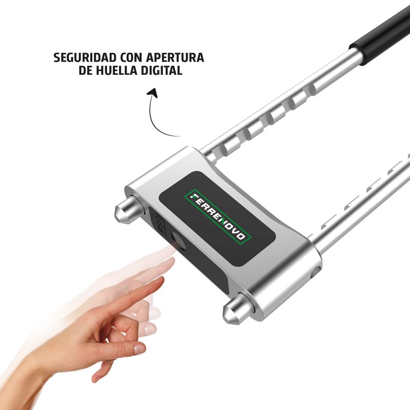El Candado Tipo U de Apertura con Huella Digital Ferrenovo es una solución innovadora para proteger tus pertenencias. Sus características clave son: