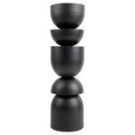 Candelabro en hierro con acabado negro mate, diseño vertical de formas geométricas apiladas y base estable, medidas 11x39x11 cm, ideal para decorar espacios modernos