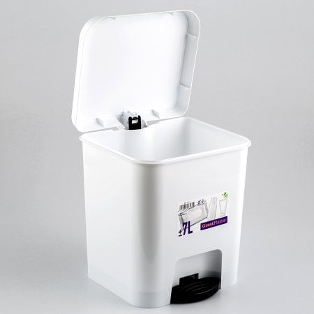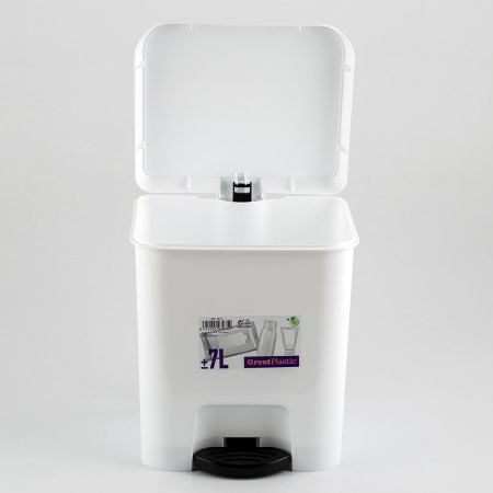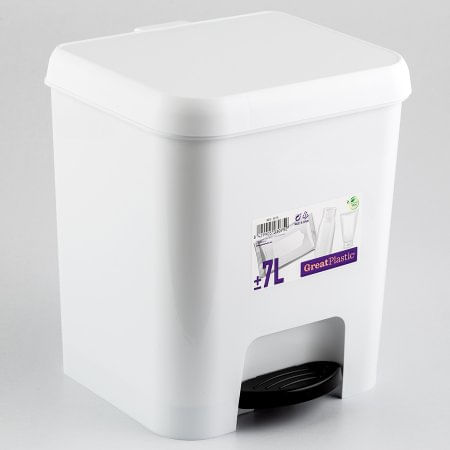 Papelera De Pedal Marca Great Plastic Color Blanco Con Pedal Color Negro Capacidad 7 Lt