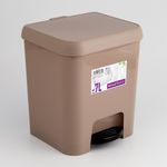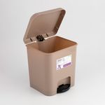 Papelera plástica café de 7 litros, práctica para manejo de residuos en espacios pequeños.