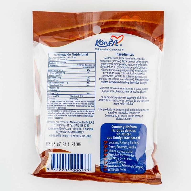 Caramelos de leche masticable, delicioso y dulce sabor sin azúcar adicionada. Para picar entre comidas sin que aporten muchas calorías al plan alimenticio. No eleva los azúcares en sangre. Deliciosos para esos momentos de ansiedad. Apto para personas que no pueden o no desean consumir azúcar. Compatible para personas diabéticas, dentro de las restricciones de una dieta con supervisión médica.