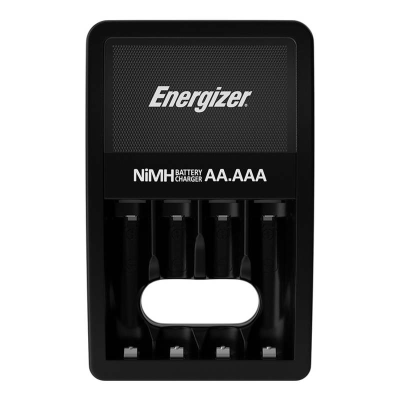 Este práctico dispositivo carga 2 o 4 pilas AA o AAA NiMH al mismo tiempo en un lapso entre 5 horas a 7 horas (Los tiempos de carga solo sirven de guía. Los plazos pueden diferir según las marcas o la capacidad mAh). Es muy fácil de usar: cargue el dispositivo, conéctelo a la pared y obtenga la energía de la batería completamente cargada cuando la necesite.Especificaciones TécnicasCuenta con indicador de carga a través de una pantalla LED de alta visibilidad, con colores que indican el estado de carga. La luz roja indica que está cargando. La luz verde indica que está completo. La luz roja parpadeante indica que la batería es mala o primaria. Cuenta con temporizador automático de seguridad para que el cargador no esté activo durante períodos de tiempo prolongados. Apagado automático y protección contra sobre carga, limitando los daños a la batería. Detección de cortocircuito. Indicador de Status de Carga Protección contra Sobrecarga Seguridad de apagado Incluye 2 pilas Energizer Recharge® AA, de NiMH (1300 mAh) Uso RecomendadoPara cargar 2 ó 4 pilas AA o AAA de NiMH.