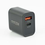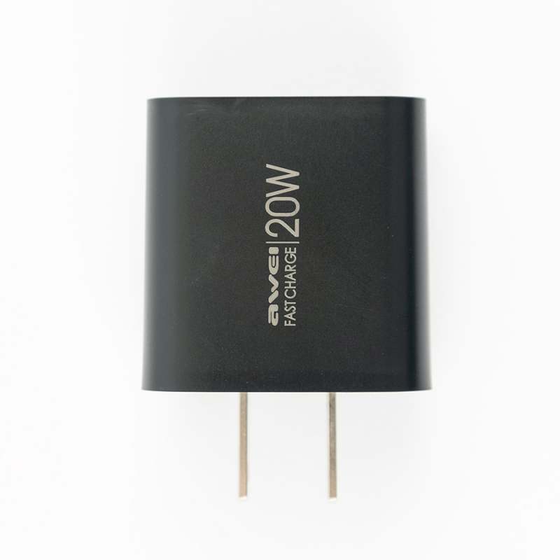 Cargador rapido 20W. Protecciones contra sobretencionesy sobrecoriente. Aplicable en dispositivos moviles con puerto micro B/LIGHTING/ TYPE-C. Entrada CA110-240. Salida de puerto TIPO C 5V/3A, 9V/2.22A, 12V/1,67A (20W)
