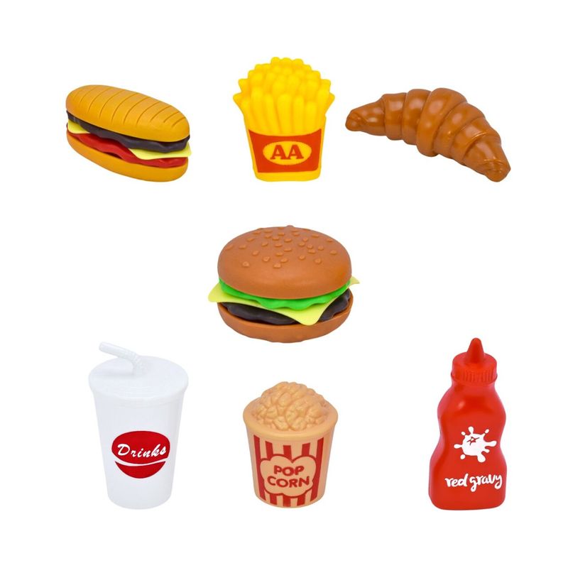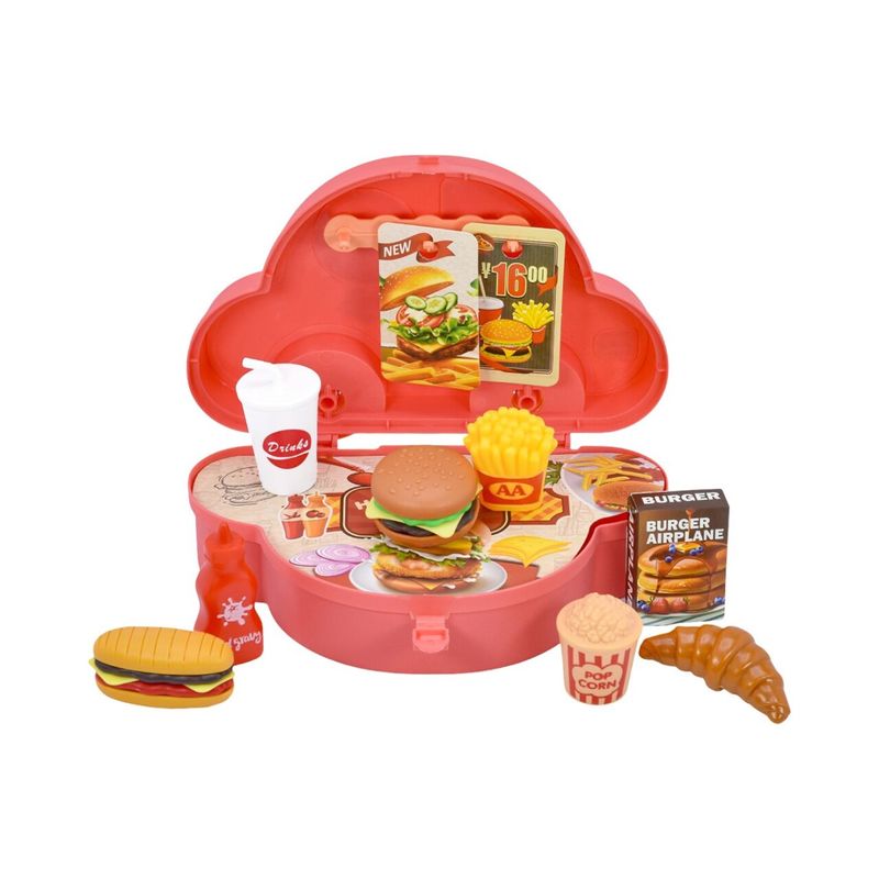 El Carrito de Comida Rápida Infantil Magic Play es un divertido playset temático de fast food. Su estuche en forma de carro se abre para convertirse en estación de comida, incluye hamburguesas armables, accesorios y comidas simuladas, además de carteles de menú decorativos. Con su cuerda para llevarlo tipo bolso, los niños pueden transportarlo fácilmente y recrear roles de cocinero o vendedor, estimulando la imaginación, el lenguaje y el juego simbólico.