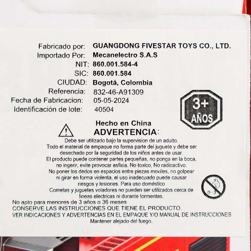 Carro de bomberos con luz y sonido, entretenimiento divertido con horas interminables de distracción sana, ayuda a los niños a desarollar su coordinación manos ojos, destreza, habilidades motoras finas y estimula la imaginación, fabricado en pàstico de calidad, incluye 1 tornillo, 2 accesorios, 1 destornillador, 3 pilas AG13 , dimensiones del producto 42.5x13x22cm. Edad recomendada de uso mayor de 3 años.