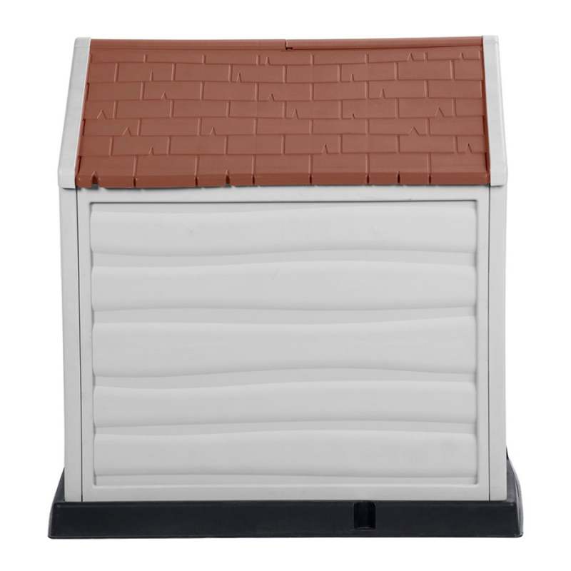 Son un miembro más de nuestra familia, un integrante más de nuestro núcleo; un amigo más, una compañía de gran ánimo y de carácter incondicional. Ellas, nuestras mascotas, merecen siempre un trato distintivo y especial, y qué mejor manera de demostrarlo que dedicando el tiempo necesario para dar con los mejores insumos para cuidar de ellos, de la integridad y salud de nuestras mascotas. Porque nuestras mascotas también se divierten y buscan pasar buenos ratos, esta casa para perro figurará como una de las mejores opciones si se trata de consentirlos y proveerlos de lo mejor. Casa para perros elaborada en plástico de forma cuadrada con base de color negro, laterales de color beige con diseño de rectángulos horizontales en relieve, el techo es de color naranja con textura tipo teja, resistente al agua para proteger a tu mascota, ideal para razas grandes, el diseño es moderno, de fácil limpieza, confortable, tamaño de 82 x 86 x 88 cms.. Casa para perros elaborada en plástico Forma cuadrada Laterales de color beige con diseño de rectangulos horizontales en relieve Techo color naranja con textura tipo teja Resistente al agua Ideal para razas pequeñas