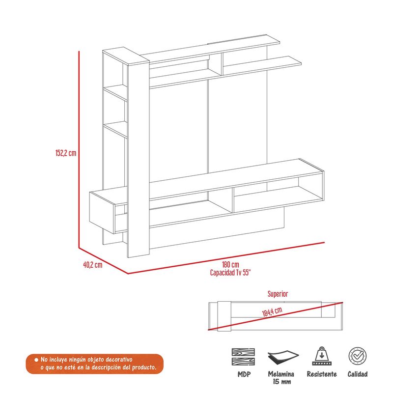 Este mueble espectacular para TV cuenta con un diseño que brinda armonia y amplitud, con espacios necesarios para organizar y colocar objetos decorativos que brinden comodidad y tranquilidad a la hora de disfrutar de una buena pelicula o ver tu programa favorito. Es el articulo ideal para tu sala, habitación o estudio proyectado para la simplicidad, creando un ambiente innovador y al mismo tiempo muy confortable, a excelente costo beneficio adaptándose a cualquier ambiente de la casa.
