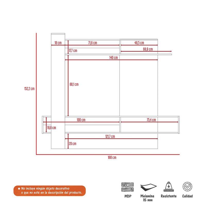• Medidas: Alto: 152,2 cm Largo: 180 cm Profundidad: 40,2 cm