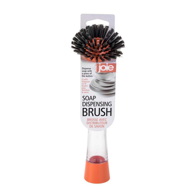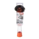 Cepillo dispensador 24 cm de largo,Color Terracota, agarre transparente – terracota con cerdas negras. Con tan solo presionar el botón está listo para limpiar platos y superficies de cocina, optimizando la limpieza de la cocina. Su mango largo y ergonómico facilita el uso y reduce la fatiga durante la limpieza. *No apto para lavavajillas.
