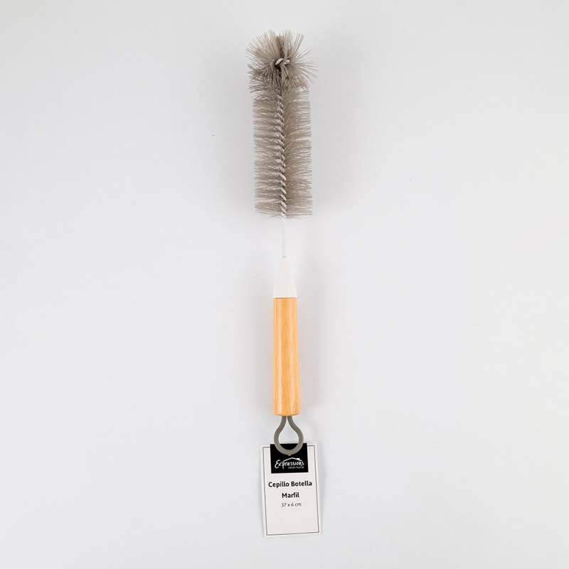 Perfecto para limpiar botellas y termos altos; mango largo de bambú.