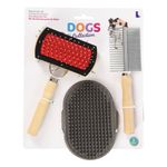 Set de cepillos para perro Dogs Collection que incluye tres piezas de 25 cm, ideales para el cuidado del pelaje, ayudan a eliminar pelo suelto y suciedad, favoreciendo una higiene adecuada y una experiencia cómoda para la mascota.