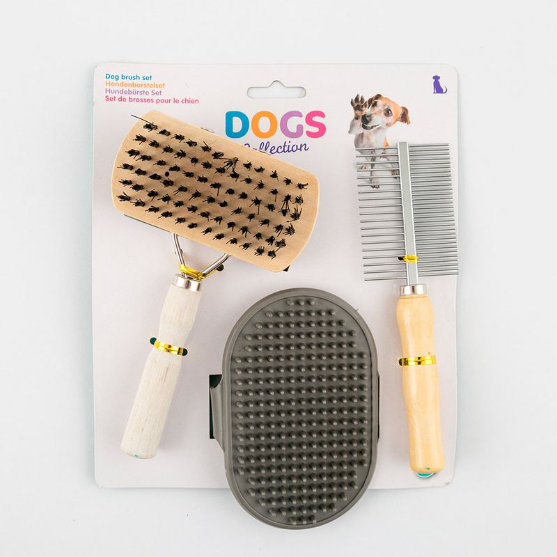 Set de cepillos para perro fabricados en polietileno, diseñados para el cuidado del pelaje y la higiene diaria de la mascota. Ayudan a remover pelo suelto, suciedad y enredos. Incluye 3 piezas surtidas. Aplican Términos y Condiciones: 'PRODUCTO SURTIDO' Los productos marcados como 'PRODUCTO SURTIDO' pueden no ser idénticos a los que aparecen publicados en las imágenes. Las imágenes son ilustrativas. Al comprar un producto identificado como producto surtido, acepta que podrá recibir un producto con características y atributos tangibles en relación con el color grabado, colección, personaje y edición diferentes a los que aparecen en las imágenes del sitio o la publicidad. Los productos surtidos mantendrán las propiedades físicas, químicas y técnicas necesarias para su funcionamiento y uso de acuerdo con su naturaleza.