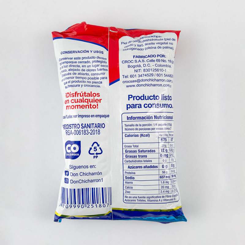 GourmetSnack Salados SaludablesChicharronesChicharron Don Chicharron Tradicional 100 Gr Natural 1807