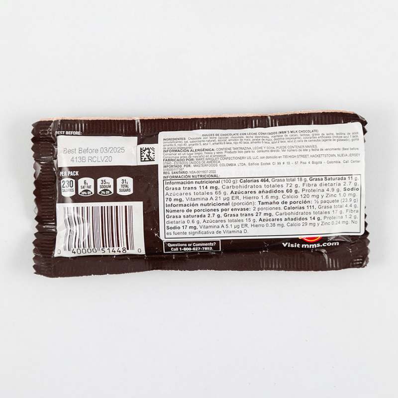 Chocolate Plain M&m 1231 4.9gr Al momento de despejarnos, de permitirnos un momento especial para así consentirnos nada como contar con los productos de mejor calidad, ampliamente reconocidos tanto por su buen gusto como por composición. Por supuesto, todo ello sin dejar de lado nuestra salud y buena disposición. Siempre procurando prestar especial atención a nuestras condiciones, nunca está demás darte un buen gusto, o incluso darle una sorpresa a tus seres queridos y allegados. Siempre buscando la manera de cómo complacerte, a ti y a los tuyos. De dar siempre una sorpresa con matices que te motiven e impulsen a seguir adelante con tu día a día, o incluso, ya sea que quieras o pienses en hacer los preparativos para un momento especial, podrás contar con las mejores opciones, las de mejor calidad y sabor: productos orientados al deleite de nuestro paladar. Deliciosos dulces de chocolate, contienen leche descremada, manteca de cacao, emulsificante, sal, y colorantes artificiales. Divertido diseño y sabroso sabor. Contenido neto 47.9gr. Contiene maní leche y soya, Puede contener nueces de árbol. Deliciosos dulces de chocolate contienen leche descremada, manteca de cacao, emulsificante, sal, y colorantes artificiales. Divertido diseño y sabroso sabor. Contenido neto 47.9gr. Contiene maní leche y soya, puede contener nueces de árbol.