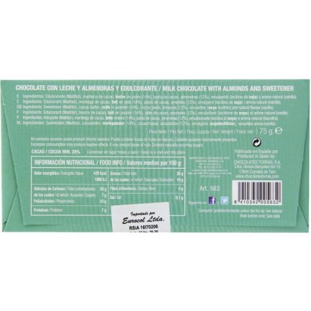 GourmetChocolates SaludablesChocolate En TabletaChocolate Torras Sin Azucar 75 Gr Almendra 563