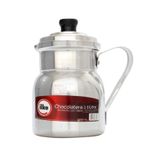 Chocolatera con Tapa ), 2 Ltrs. en Aluminio Natural, Tapa con Pomo de baquelita, para tener un mejor agarre de esta. Agarradera resistente. Apta para cocinas Eléctricas, Gas. No apta para Indicción. Libre de PFOA – Plomo – Cadmio. ¡ Disfruta tú bebida caliente ¡
