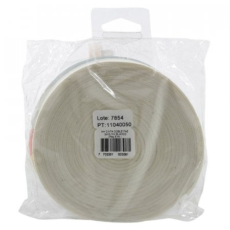 Cinta doble faz de color blanco, para trabajos de montaje y fijación sobre casi cualquier superficie, práctica y de Fácil uso, con adhesivo por las dos caras, de 3mts x 24mm, sustituto de chazos y tornillos, elaborada en Colombia.