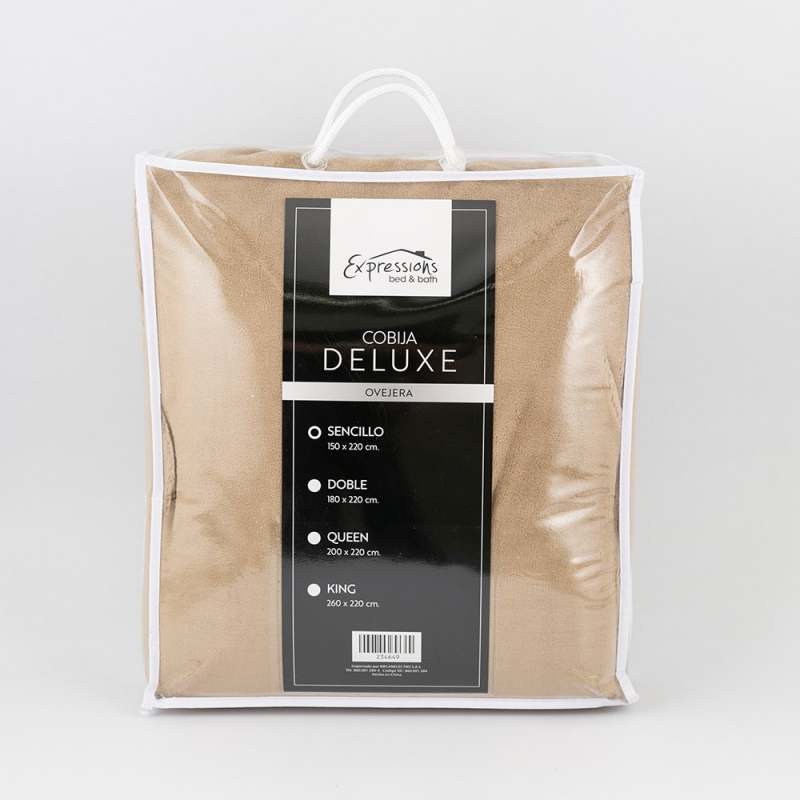 Cobija sencilla de 150 x 220 cm fabricada en poliéster con acabados flannel y sherpa. Color taupe cálido y neutral. Suave y ligera, perfecta para ofrecer calidez y estilo en cualquier espacio.