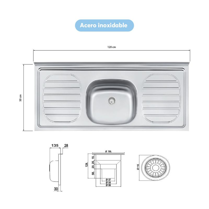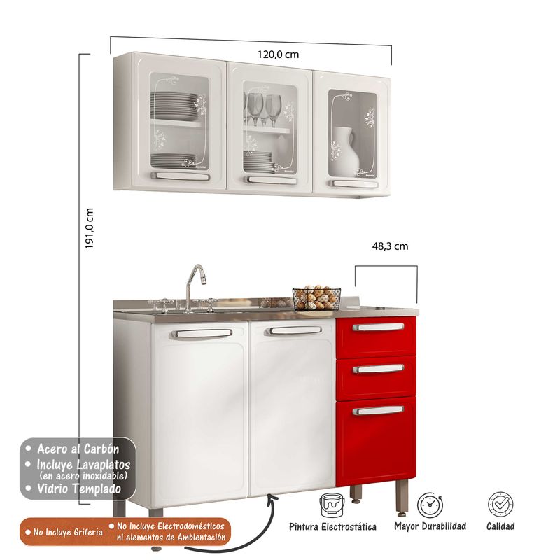 Mueble Base con Lavaplatos: Alto: 85cm, Ancho: 48cm, Largo: 120