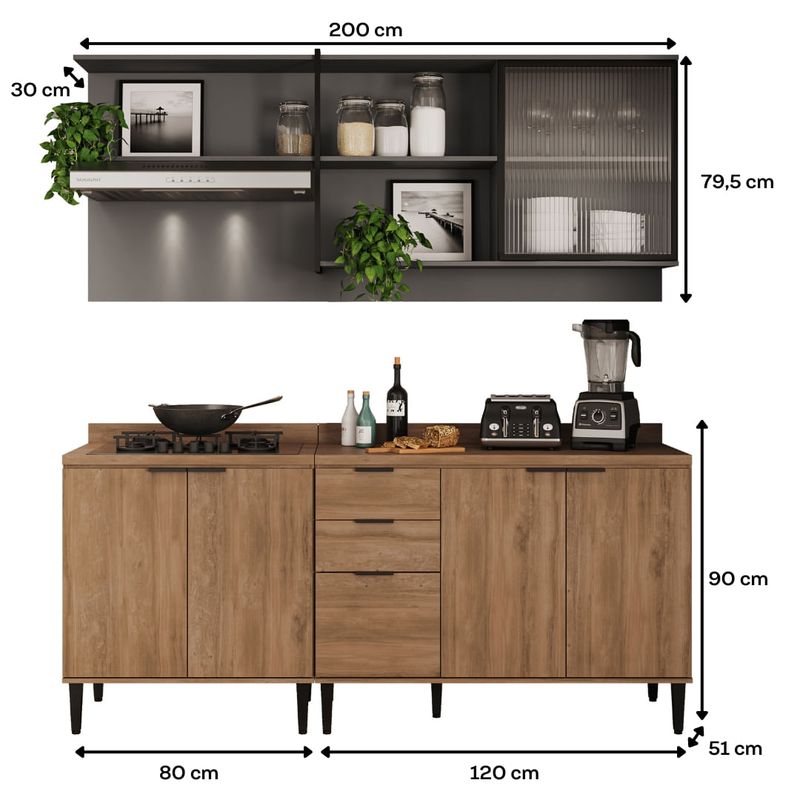 Medidas de la cocina completa: Alto: 191cm Ancho: 200cm, Profundidad: 50cm, Peso: 97 Kg.