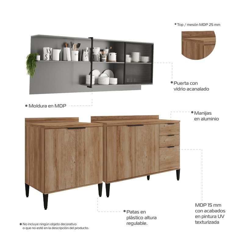Cocina Integral 2,00m en MDP de 15mm incluye mesón en MDP