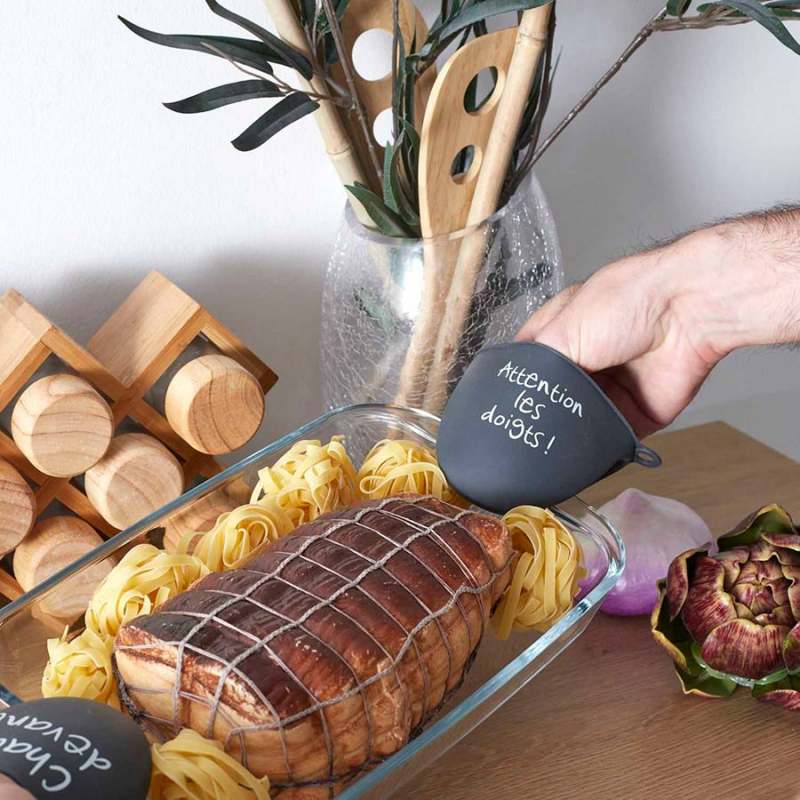 Coge ollas cuisy kb5083 en silicona diseño surtido. ¡Déjese seducir por el mensaje ilustrado en esta coge ollas!. Impermeable y antideslizante, resiste a las altas temperaturas para acompañarle en la cocina. Este coge ollas es el accesorio indispensable para protegerse de las quemaduras en la cocina. Rojo, negro y gris 9.5x8x10.5 cm 100 % elastómero. Los productos marcados como 'producto surtido' pueden no ser idénticos a los que aparecen publicados en las imágenes, las imágenes son ilustrativas. al comprar un producto identificado como producto surtido, aceptas que podrás recibir un producto con características y atributos tangibles diferentes a los que aparecen en las imágenes del sitio o la publicidad, los productos surtidos mantendrán las propiedades físicas, químicas y técnicas necesarias para su funcionamiento y uso de acuerdo a su naturaleza.