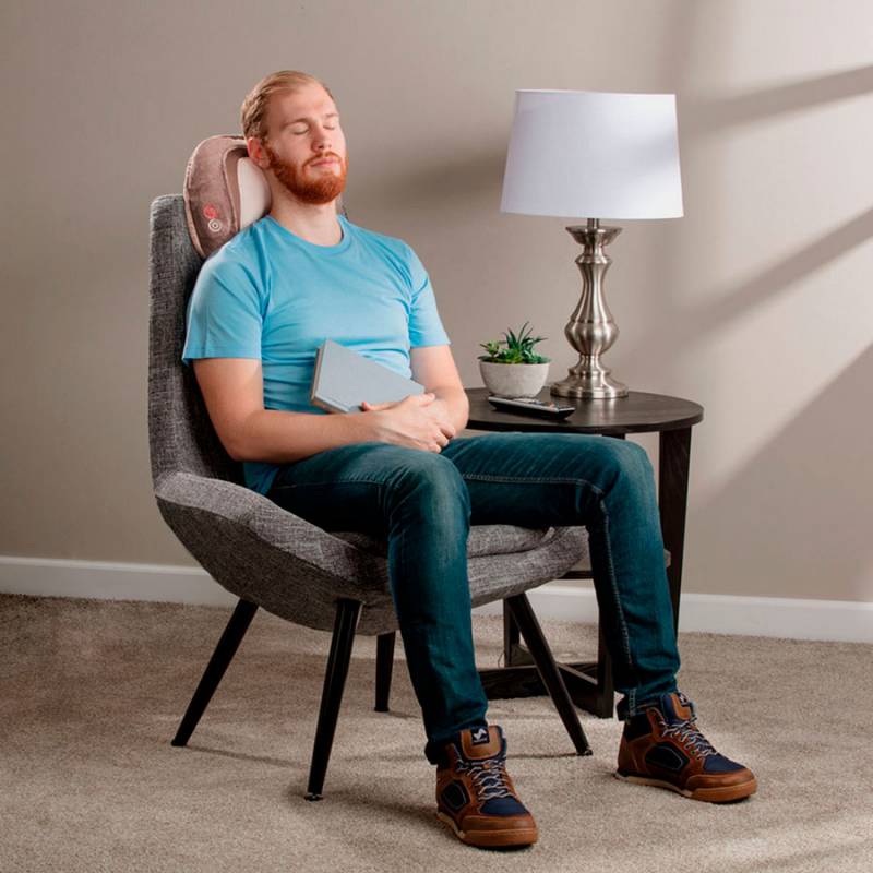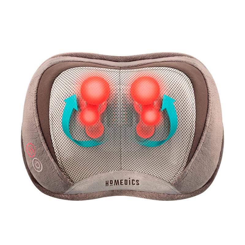 Cojin masajeador. Marca: Homedics. Materiala: Felpa y malla, interior con tecnologia 3d de amasamiento. Posee botón de calor y botón de encendido incorporados al diseño. No apto para diabéticos, personas con marca pasos o mujeres en estado de embarazo, Previo concepto medico Masaje shiatsu. Cordón eléctrico de 120 voltios. Suave y lujoso, Uso versátil, Cómodo. Cremallera de cierre. Uso doméstico. Advertencia: La función de calor no funcionará si la función de masaje no está activa. El uso prolongado puede causar recalentamiento y disminuir su vida útil. No use el producto directamente sobre áreas hinchadas o erupciones cutáneas. No debe ser operado por alguna persona que padezca un trastorno físico que le limite la capacidad de usarlo correctamente.