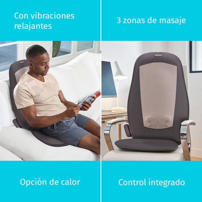 • Masaje shiatsu: disfrute de un masaje shiatsu de amasado profundo que se enfoca en los puntos de presión en la espalda moviéndose hacia arriba y hacia abajo con movimientos circulares para aliviar la incomodidad • Secuencias preprogramadas: 3 convenientes programas preestablecidos ayudan a enfocarse en la parte superior de la espalda, la parte inferior de la espalda y los músculos de la espalda completa; mantenga presionado el botón modo para activar cada zona • Masaje personalizado: el control remoto integrado permite alternar entre 3 zonas de masaje, agregar calor y encender y apagar con facilidad para que pueda sentarse, relajarse y obtener el alivio del dolor muscular que se merece. • Masaje personalizado: el control remoto integrado permite alternar entre 3 zonas de masaje, agregar calor y encender y apagar con facilidad para que pueda sentarse, relajarse y obtener el alivio del dolor muscular que se merece. • Contenido de la caja: (1) cojín de masaje shiatsu homedics con calor, (1) folleto de instrucciones, (1) garantía limitada de 2 años