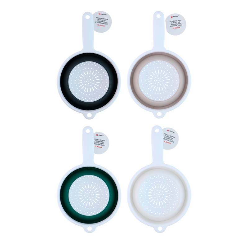 Colador Plegable Alpina De 22.5 Cm. Fabricado En Polipropileno Y Caucho Termoplástico. Colores Surtidos. Plegable, Lo Que Facilita Su Almacenamiento Y Permite Ahorrar Espacio En Cajones O Colgarlo Fácilmente. Ideal Para Acampar O Para Cocinas Pequeñas. Su Práctica Asa Ofrece Un Agarre Seguro Al Escurrir Pasta O Enjuagar Frutas. Nota Sobre Producto Surtido: Los Productos Marcados Como “Producto Surtido” Pueden No Ser Idénticos A Los Que Aparecen En Las Imágenes. Las Imágenes Son Ilustrativas. Al Adquirir Un Producto Identificado Como Surtido, Aceptas Que Podrás Recibir Una Versión Con Características O Atributos Diferentes A Los Mostrados, Manteniendo Siempre Las Propiedades Físicas, Químicas Y Técnicas Necesarias Para Su Correcto Funcionamiento Y Uso. Los Productos Marcados Como “Producto Surtido” Pueden No Ser Idénticos A Los Que Aparecen Publicados En Las Imágenes. Las Imágenes Son Ilustrativas. Al Comprar Un Producto Identificado Como Producto Surtido, Aceptas Que Podrás Recibir Un Producto Con Características Y Atributos Tangibles Diferentes A Los Que Aparecen En Las Imágenes Del Sitio O La Publicidad. Los Productos Surtidos Mantendrán Las Propiedades Físicas, Químicas Y Técnicas Necesarias Para Su Funcionamiento Y Uso De Acuerdo Con Su Naturaleza.
