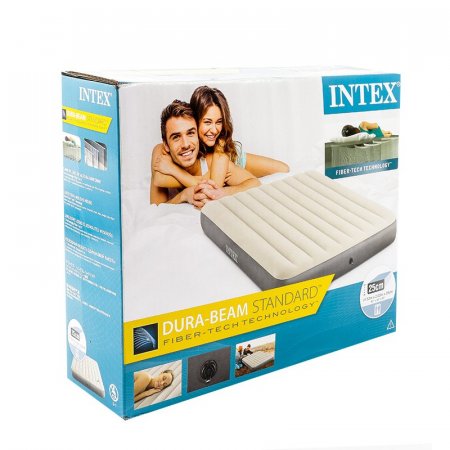Colchón Inflable Intex Queen Beige Elaborado con tecnología Fiber-Tech, cuenta con miles de fibras de poliéster de alta resistencia que aseguran su durabilidad y confort. Ideal para actividades de camping o para recibir visitas en casa, su diseño garantiza un descanso cómodo y estable. Su calidad y resistencia lo convierten en una opción confiable para el hogar.